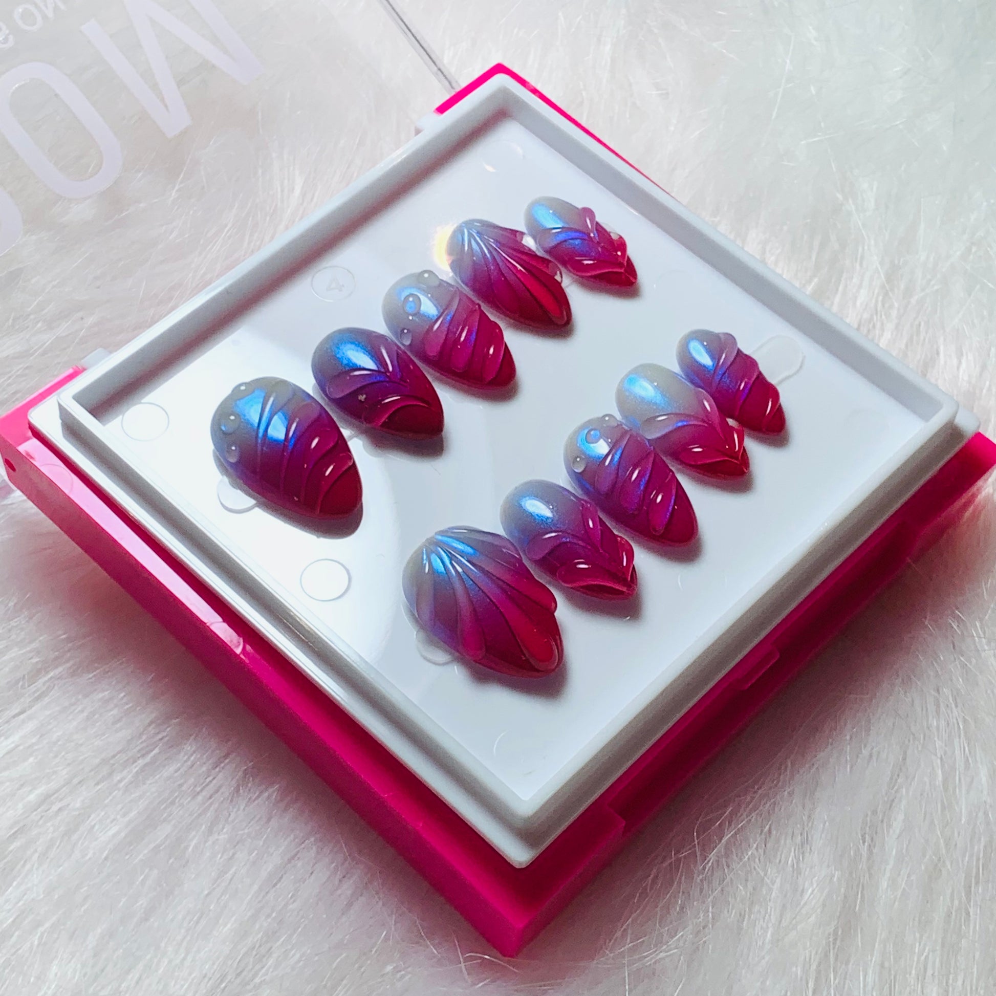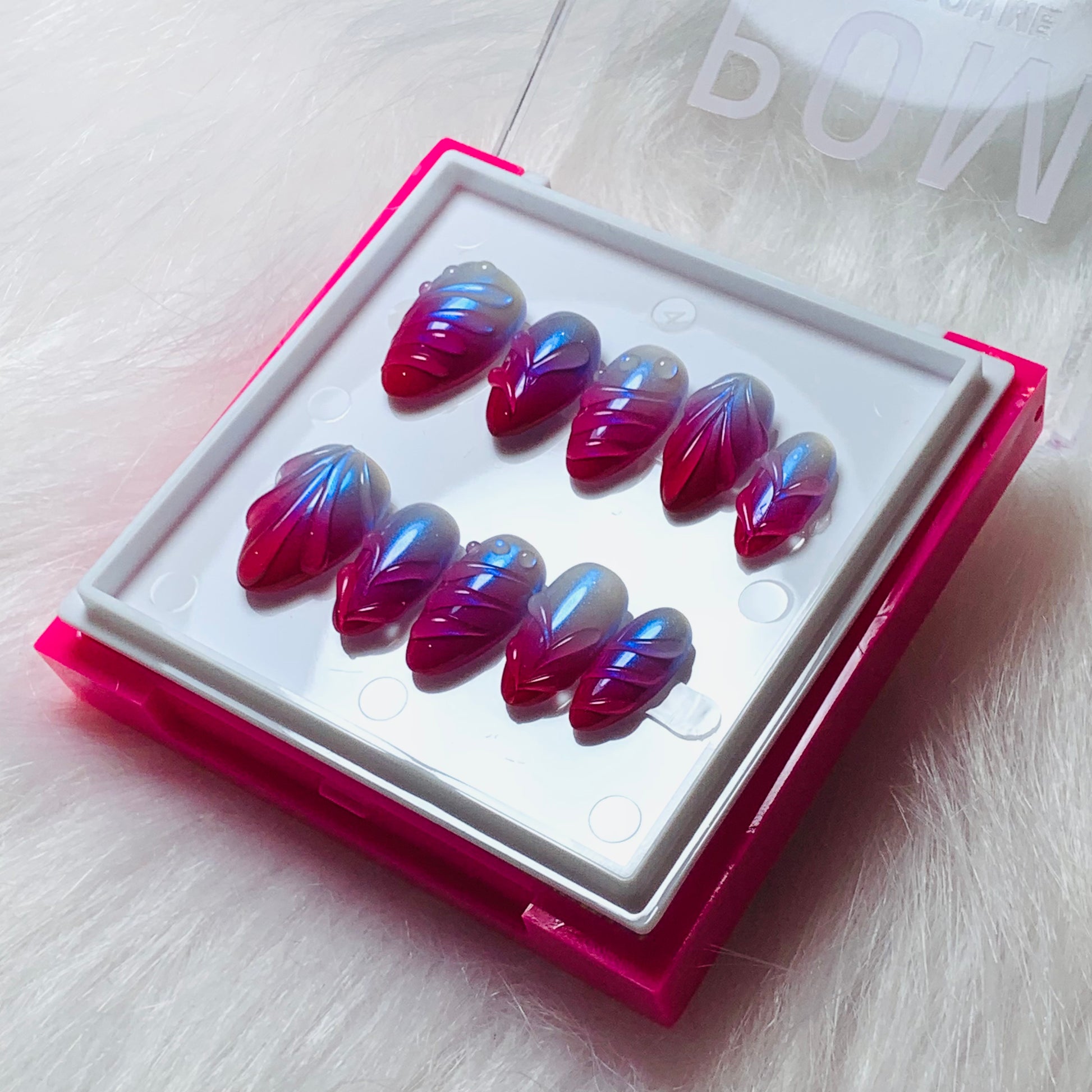 POM - Rose Dewdrop press-on nails deliver instant glamour with a stunning Mirror Powder Ombre finish in our Red series. The short almond shape offers comfort and flatters every hand, while the reusable design means you can wear them again and again. Slip them on in seconds for salon-quality nails without the commitment or price tag. Express yourself and switch up your look whenever the mood strikes.